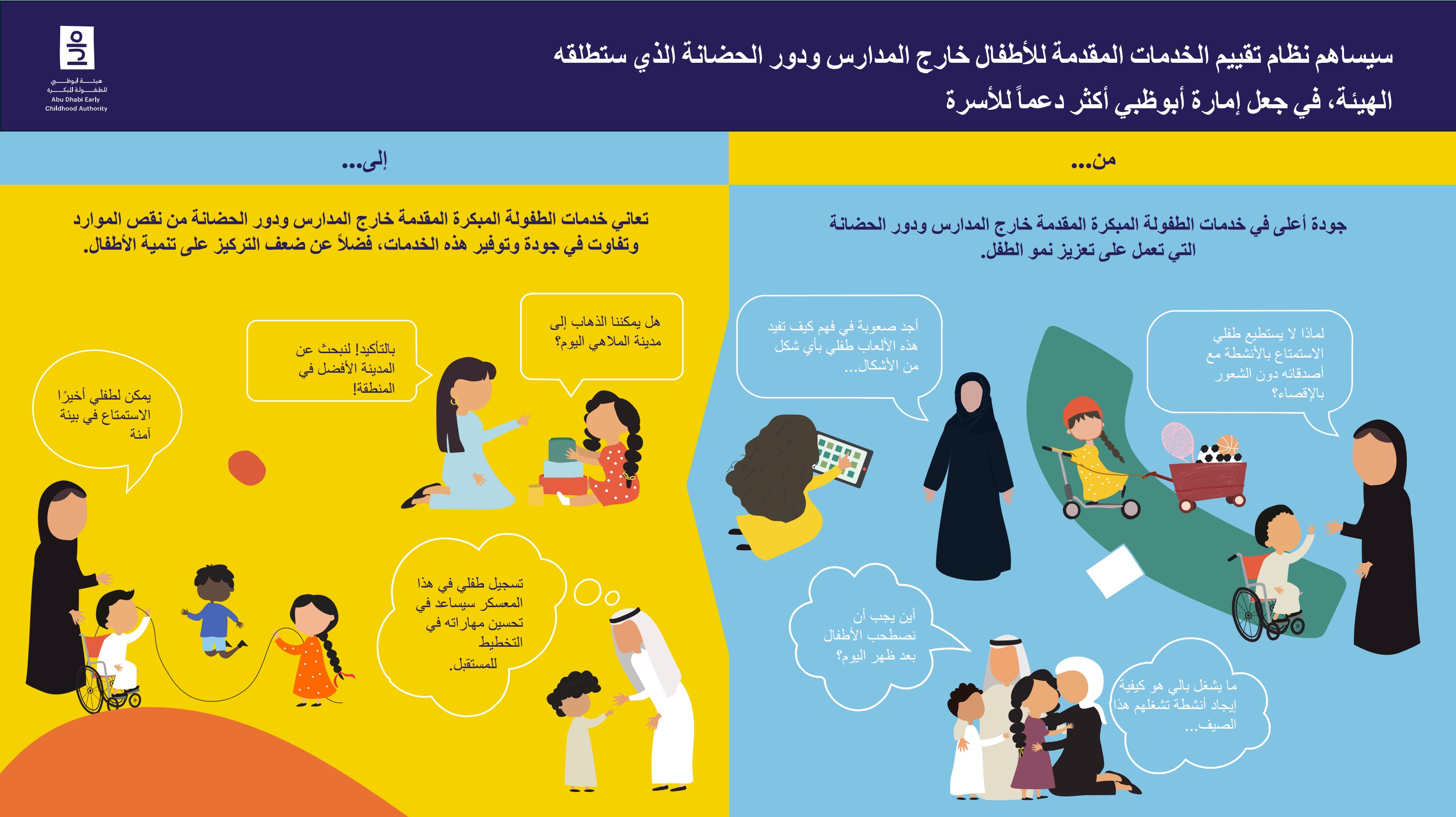 وقالت معالي سناء بنت محمد سهيل ، وزيرة الأسرة ، مدير عام هيئة أبوظبي للطفولة المبكرة، بمناسبة يوم الطفل الإماراتي، إن الهيئة لا تسعى من خلال هذا النظام إلى تحديد معايير الخدمات المقدمة للأطفال خارج دور الحضانة والمدارس وتقييمها فحسب، ولكن تهدف إلى الارتقاء بمستوى تلك الخدمات، وإحداث نقلة نوعية في تجربة الأسر والأطفال.
