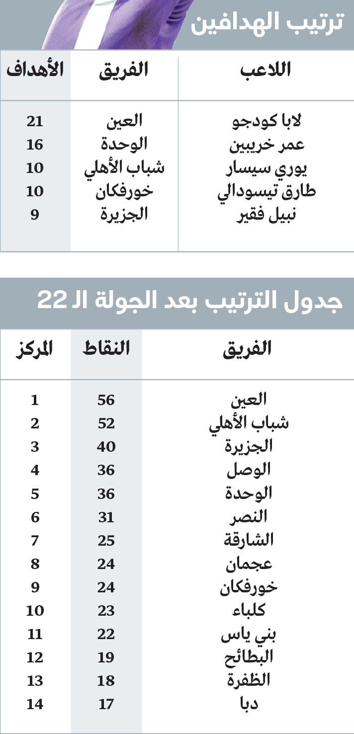 «الإمارات اليوم» تستعرض أبرز مشاهد هذه الجولة الـ22.